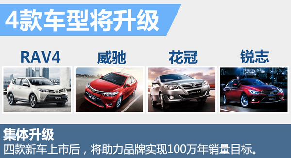 一汽丰田目前共推出包括RAV4、威驰等10款车型,其中皇冠与卡罗拉已经完成换代,根据一汽丰田未来的产品规划,旗下威驰、花冠、RAV4和锐志四款车型将迎来陆续改款。一汽丰田总经理姜君向网通社表示:“短期内,一汽丰田旗下明星产品卡罗拉即将增加全新动力总成,多款拳头产品也将全新换型。”此前,丰田官方发布了全新的1.2T发动机,该发动机油耗更小且动力强劲,基于车型定位,丰田全新的1.2T发动机将有望搭载在改款/换代之后的威驰、花冠、RAV4之上。