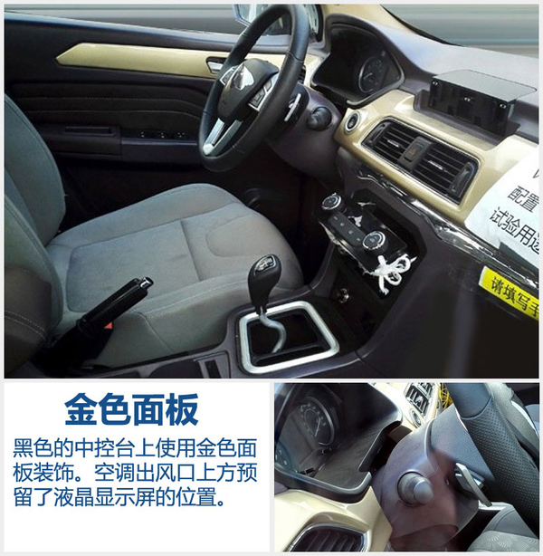 内部设计上,威旺M50运用了黑、金、灰三色设计。可能由于是初期测试车辆的缘故,这种色差处理方式并不太协调,金色面板也没有威旺S50使用的那种仿木纹面板显得高档。配置方面,四幅式方向盘、一键启动及关闭、中控液晶屏都应该会在后续量产车型上出现。
