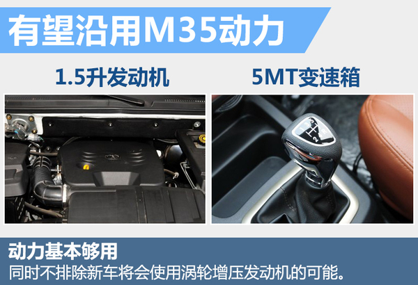 动力方面,威旺M50有望沿用威旺M35的1.5升自然吸气发动机+5速手动变速箱的动力组合,并采用前置前驱的设计。该发动机最大输出功率可达85千瓦,峰值扭矩为150牛米。考虑到新车的定位更高,也不排除其选择搭载涡轮增压发动机的可能。