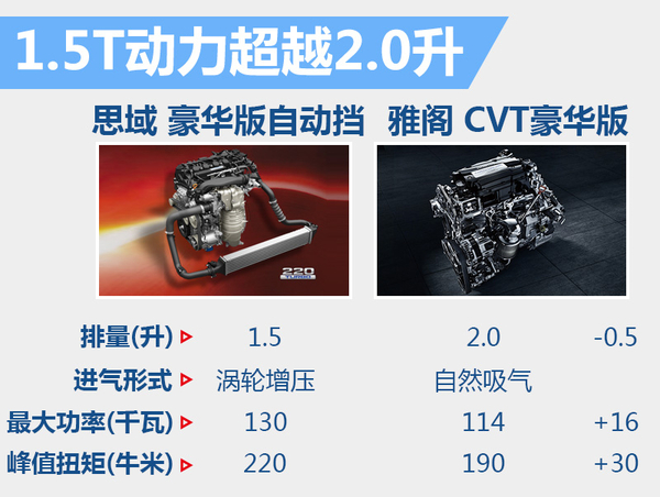 动力对比:思域豪华版 自动挡220 TURBO功率、扭矩超过雅阁2.0L CVT 豪华版