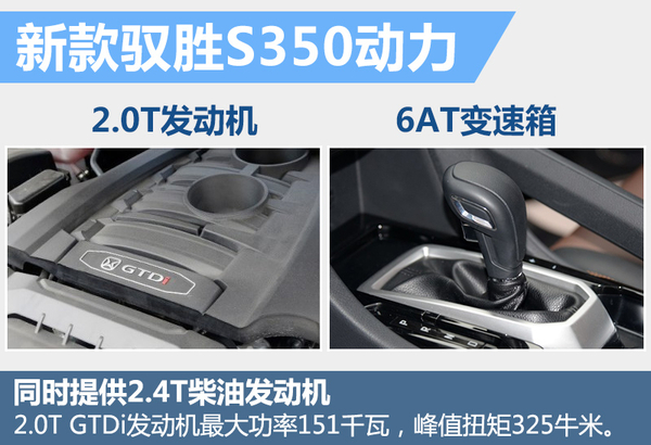 与改款前驭胜S350 2.0T车型不同的是,全新驭胜S350使用了源自福特技术的GTDi发动机,而老款车型使用的是源自三菱技术的2.0T发动机,这款源自福特技术的GTDif发动机也被广泛使用,包括福特翼虎、蒙迪欧、金牛座以及沃尔沃X60。从现款驭胜S350的2.0T版12.88万元的价格来看,即将推出的全新S350车型的预计起售价也会在13万元上下。