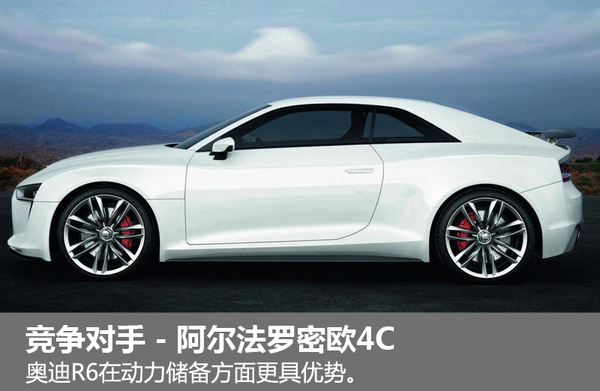 在同级别中置发动机跑车中,阿尔法罗密欧4C是奥迪全新R6的竞争对手。而在两车的较量中,虽然阿尔法罗密欧4C与奥迪R6均采用中置发动机布局,但奥迪R6将凭借排量更大的发动机,以及更多的汽缸基数,从而在动力储备方面优于阿尔法罗密欧4C跑车。(网通社2016年4月18日北京报道)