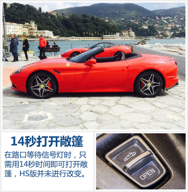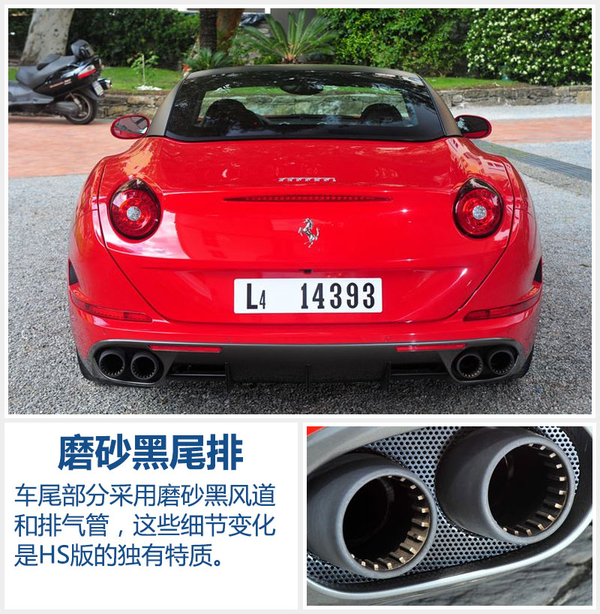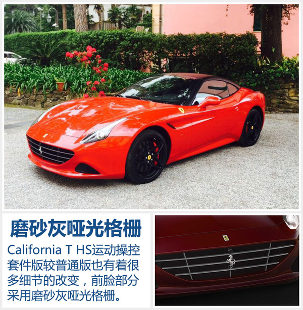 法拉利California T HS相比普通版而言,增加了价值5,800欧元(约合4.2万元人民币)的选装包,所换来的并非是太过张扬的造型设计,但在操控感受和排气声浪方面则更令人沉迷。在4月25日开幕的北京车展上,法拉利将公布这款新车在华售价,将比California T普通版的车主拥有更趋于完美的驾控体验。(网通社2016年4月18日米兰报道)