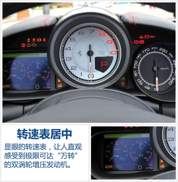 不仅如此,车辆还应用最新的SCE磁流变液减震系统,进而提高减震器的反应速度和效率。法拉利引以为傲的F1-Track牵引力控制系统,在新车上也得到改良,保证车辆在出弯、崎岖不平在内的复杂道路上驾驶时更加从容。