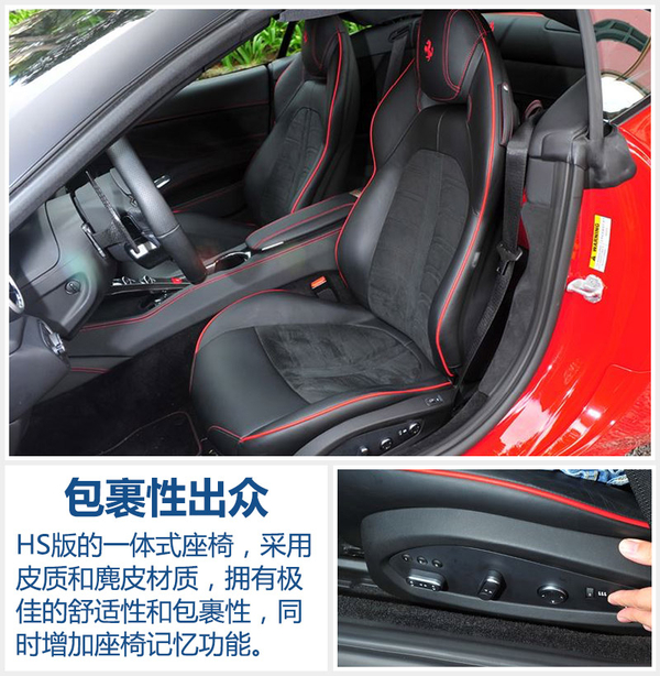 此次针对California T推出HS全新运动操控套件,对整车提供一系列专用的校准装置以提升车辆的驾控体验。其中车辆的悬架系统进行了重新调校,前后弹簧的硬度分别为16%和19%,并减少侧倾、俯冲在内的车身姿态。