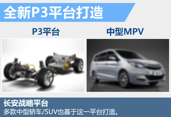 根据长安汽车规划,未来将逐步形成P1、P2、P3、P4四个乘用车产品平台。李伟表示:“P3平台是长安的经典平台,未来会基于这一平台推出4款车型,一款传统轿车、一款加强型轿车、还会有SUV和MPV。”明年即将推出的中型MPV将基于P3平台打造。动力方面,新车有望搭载一台1.5T涡轮增压发动机。