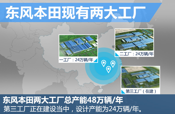 在产能方面,东风本田目前拥有两座工厂,2004年在武汉建立第一工厂,其年产能为24万辆,主要生产车型包括CR-V、思铂睿、艾力绅及思域车型。时隔八年后第二工厂在武汉投产,主要生产新上市的XR-V、思域、杰德及思铭车型,届时东风本田拥有48万辆的年产能。此外,东风本田还将建立具有24万产能的第三工厂,届时,东风本田将达到72万辆的产能规模。(网通社2016年4月18日北京报道)