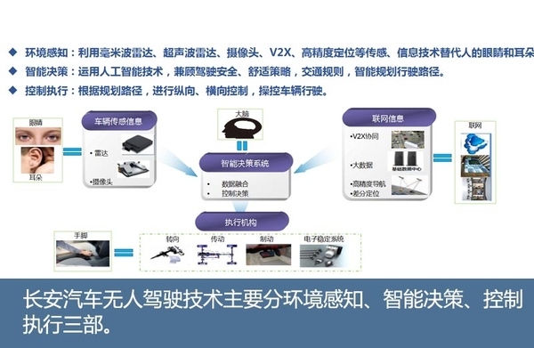 通过在无人驾驶方面超前完成技术研发,长安汽车目前已在睿骋和CS75的量产车型上搭载全景辅助系统、并线辅助、车道偏离预警等科技配置;全速自适应巡航系统、自动紧急制动系统、前防撞预警系统、自动泊车辅助系统2016年将在睿骋、 CS75、逸动、CS35等车型正式量产,并达到智能化一级水平。
