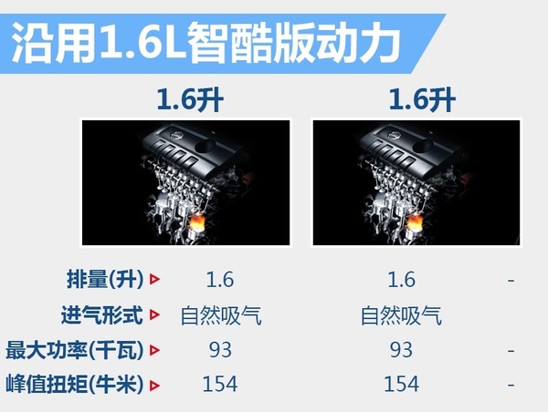 新款蓝鸟1.6L 智炫版CVT版沿用老款蓝鸟1.6L 智酷版CVT动力,油耗不变