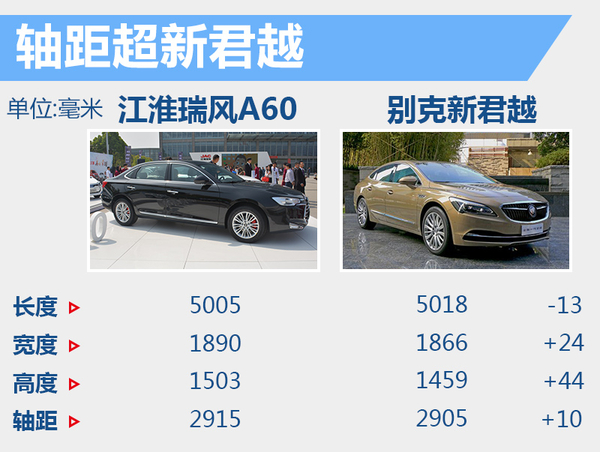 在实现对小型、紧凑型产品阵容的覆盖之后,江淮汽车将向定位更为高端的中型轿车领域拓展,并将新车定名为“瑞风A60”。网通社从江淮汽车官方获悉,瑞风A60将在北京车展正式亮相,预计将于今年下半年正式上市。新车拥有超过2.9米的轴距,超过了全新君越,定位公商务行政座驾,配备座椅按摩、后排扶手多功能按键等配置。