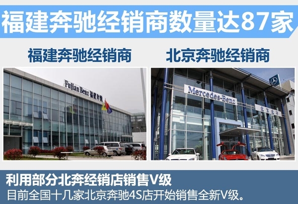 网通社:福建奔驰目前有多少家经销商,全新V级车会不会利用北京奔驰销售网络,未来经销商网络这一、二线城市布局和市场占有率大概是怎样?