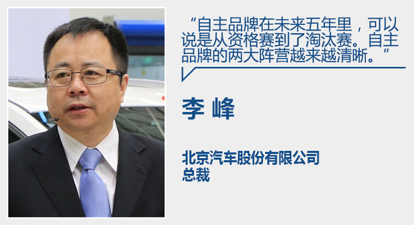 北京汽车股份有限公司总裁李峰向网通社表示:“自主品牌在未来十三五的五年里,可以说是从资格赛到了淘汰赛。自主品牌的两大阵营应该说越来越清晰。”