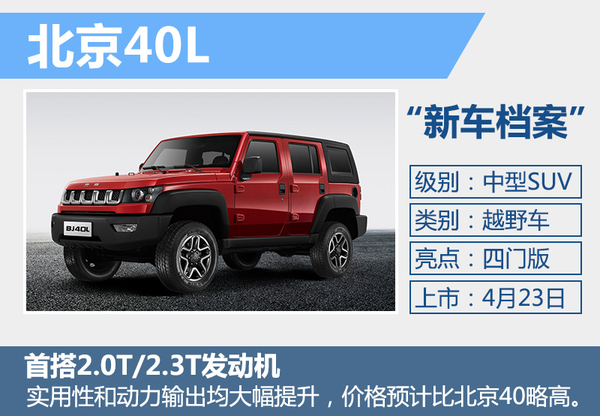 | 北京20 | A级SUV | 下半年(预计) |
