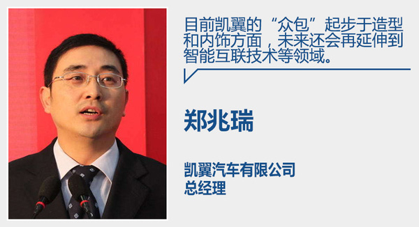 郑兆瑞:众包的概念出自美国人,就是进入大众参与。我们知道,全世界的各种百科全书过去都是由一个专家团队编写,但是现在风靡世界的维基百科的词条便是由世界各地的人共同来提供,一条条攒起来,这就是“众包”。目前凯翼的“众包”起步于造型和内饰方面。