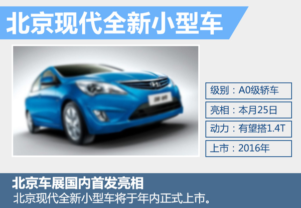 北京现代全新小型车将于本月25日举办的北京车展中国内首发亮相,北京现代常务副总经理刘智丰在与网通社沟通时表示:“这款全新的车型将是本届车展中北京现代品牌最大的关注点”。全新小型车有望搭载动力更加强劲的涡轮增压发动机,将给人一种充满活力的感觉,这一点与Bigbang队长权志龙在舞台上活力四射的形象不谋而合。