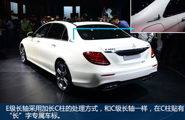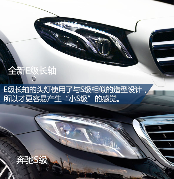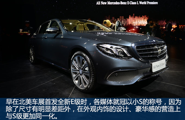 奔驰全新一代E级长轴在北京车展前夜全球首发,早在北美车展首发全新E级时,各媒体就冠以小S的称号,因为除了尺寸有明显差距外,在外观内饰的设计、豪华感的营造上与S级更加同一化,而E级长轴保持原汁原味的同时,车身尺寸近一步加大,长宽高分别为5065/1860/1467毫米,轴距为3079毫米,长度相比标准版车型增加142毫米,轴距增加140毫米,同时在轴距方面也已经超过海外版S级44毫米。
