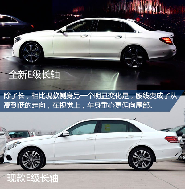 所有品牌都采用家族的风格已经不是什么新鲜事了,而作为奔驰这样的豪华品牌,把旗舰车型的外观下方到中端车型,对于准车主来说简直就是福利,花更低的价格,享受更高层次的优越感。我们知道标轴的E级相比上一代长度增加43毫米,轴距增加65毫米,国产版E级长轴相比现款增加的尺寸同样是这个数量级,长增加41毫米,轴距增加65毫米。
