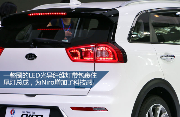 起亚Niro虽然依旧是虎啸前脸,但相比自家其他兄弟,更讨巧更精致。中网并没有大面积占据前脸,钢琴烤漆和镀铬材质搭配得体。而配合眉眼上挑的前大灯,凶狠气质就凸现出来了。车身并没有突出强调混动定位,只不过在尾部低调的贴上ECO hybrid铭牌,另外尾灯光带和LED刹车灯都十分的有科技感。