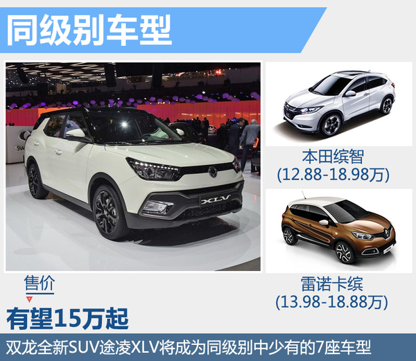 双龙汽车于去年推出了旗下首款小型SUV蒂维拉,新车上市第一年的销量便达到了45,201辆,超过了双龙制定的38,500辆的销量目标。随着国内小型SUV市场行情的持续火热,双龙将在小型SUV产品线继续发力,推出"7座版蒂维拉"——国内命名为途凌XLV。网通社从双龙汽车官方了解到:双龙途凌XLV将于今日将正式上市。新车采用7座座椅布局,将推出1.6升汽油发动机和1.6T柴油发动机两个动力版本。此外,网通社通过走访双龙汽车经销商了解到:新车有望15万元起售。