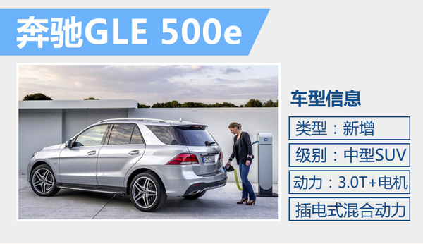 奔驰在国内的新能源布局中,已推出C350eL和S500eL两款插电式混合动车型。根据奔驰未来在华新能源市场的发展规划,接下来将有更多新能源车型引入。奔驰旗下的首款插电混合动力SUV车型GLE500e将于今日首发,新车的混动系统将由一台3.0T发动机与一台电动机共同组成,燃油经济性大幅提升,百公里综合油耗仅为3升。(网通社2016年4月25日北京报道)