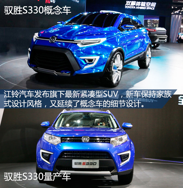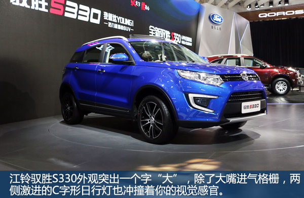 2016年北京车展,江铃汽车发布旗下最新紧凑型SUV,新车保持家族式设计风格,又延续了概念车的细节设计,大嘴进气格栅+悬浮车顶效果,可以说驭胜S330在设计上更加成熟,车身比例也拿捏的更好。内饰选用真皮和硬塑料的搭配方式,动力方面搭载了1.5GTDi涡轮增压发动机,最大功率120千瓦。从更高一级别的驭胜S350价格来看(12.28-15.18万元),驭胜S330的售价区间会在10万元上下,预计将在今年下半年上市。