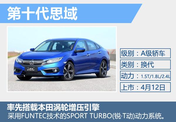 | 东风本田-第十代思域 | 紧凑型轿车 | 已上市 |