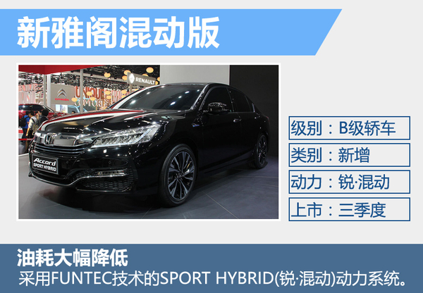 FUNTEC技术的第二组成部分就是SPORT HYBRID(锐·混动),新技术是未来本田在华发展新能源的重要手段,主要特点:进一步减少排放量,燃油经济性比汽油机更好,同时续航里程更长,也针对充电桩普及不到位做好充分准备。当然此次车展本田亮相的首款插电式混动车型成为焦点,新雅阁混动版正式亮相,该车计划于今年第三季度正式上市,搭载双电机混动系统,发动机将采用2.0升四缸阿特金森循环汽油发动机,其综合最大输出功率为158千瓦,综合工况下的百公里油耗仅为4.8升。