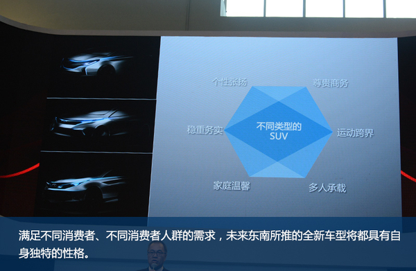 在本届北京车展东南汽车发布会当中,对于未来的新车东南官方其实已经做出了相应的披露。对于车辆的使用,每个人都有着不同需求,有的人追求个性张扬,有的追求稳重务实,还有追求家庭温馨、尊贵上午、运动跨界、多人承载等多方面。未来东南针对不同人群,推出的每款车型都有着自己独特的性格。左自生表示:“我们生产这一系列洗车,每辆汽车都有它自己的DNA,它不仅仅是一辆车,而是在整个系列中都有所体现。”