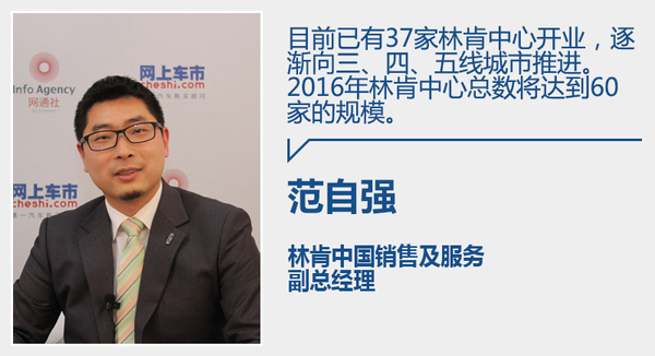 在经销商网络方面,截止2015年已有37家林肯中心开业,超过前期的目标25家。目前一二线,国内主要省会城市都已形成初步的布局,逐渐向三、四、五线城市推进。2016年林肯将在全国50个城市建设经销商,总数达到60家林肯中心的规模。“我们从一个没有网络覆盖到开始覆盖的过程,选择经销商和合作伙伴时非常慎重,一直在强调林肯之道,是一个非常以客户为尊的,个性化的一个体验,选择投资人时,更多的希望把正能接受、领悟林肯之道,可以执行林肯之道的投资人和经销商。”范自强向网通社介绍了渠道建设的思路“目前一二线,国内主要省会城市都已形成初步的布局,逐渐向三、四、五线城市推进。”