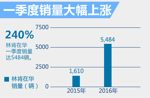 2015年是林肯在中国销售的第一个完整年度,在只有3款车型销售和30多家经销商的情况下,达到了11,630辆的成绩。今年一季度,林肯在华销量实现将近240%的增长,达5,484辆。这一数字表现已经接近去年整体销量的一半。随着MKZ中期改款车型、Continental的推出,产品线进一步丰富,包括经销商网络从现在的37家,即将增加到60家,今年林肯在华销量将有望超越2万辆。(网通社2016年4月26日北京报道)