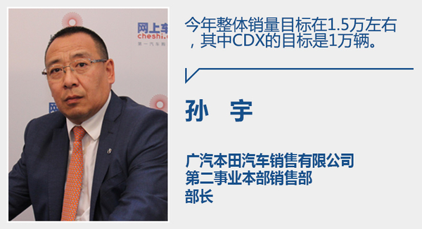 讴歌品牌旗下产品一直以进口形式在华销售,销量成绩并不理想。2016年广汽本田国产讴歌项目进入实施阶段,正式宣布广汽本田销售公司北京分公司成立,运营广汽讴歌品牌,全面推进讴歌在华事业发展。如今,讴歌首款国产SUV CDX已于北京车展首发亮相,作为讴歌国产化的第一步,CDX将肩负着助力讴歌在华扭转销量颓势的重任。在谈及讴歌CDX以及今年整体的销量目标时,广汽本田第二事业本部销售部部长孙宇向网通社表示:“今年整体销量目标在1.5万左右,其中CDX的目标是1万辆。”新车于7月底上市后,有望凭借时尚的外形和相对较低的售价等优势,帮助讴歌在华实现1.5万辆销量目标。