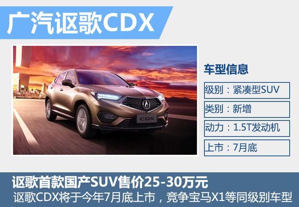讴歌首款国产车型定位为紧凑型SUV,新车基于此前发布的SUV-X概念车打造,将在广汽本田第二工厂投产,并于7月下旬正式上市。价格偏高是讴歌在华表现不佳的原因之一,全新SUV投产后,25-30万元的价格区间将进一步拉近与消费者之间的距离,新车有望使讴歌在华市场品牌竞争力得到提高。