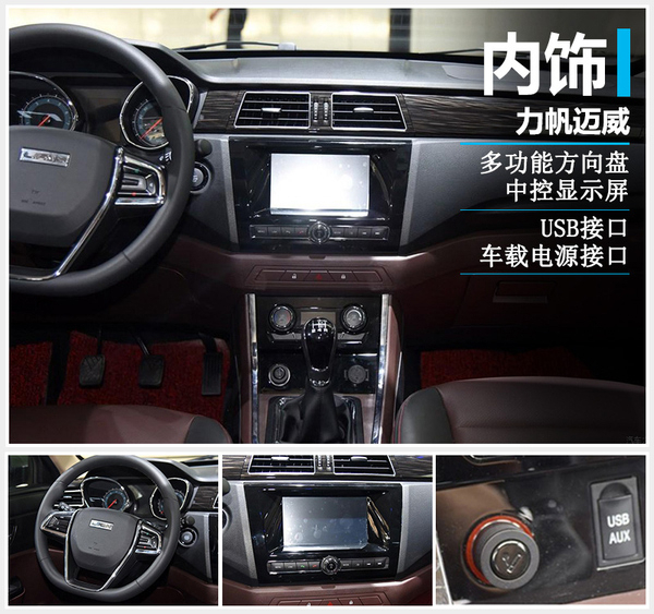 力帆迈威内饰的整体造型设计中规中矩。内饰以黑色为主色调,座椅采用皮质包裹,车内顶棚采用米色材质覆盖,为整体氛围增添了亲和感。中控台功能控制键采用按键及旋钮设计,符合用户操作习惯;液晶显示屏、仪表盘配备的彩色行车电脑以及多功能方向盘则为内饰增添了科技感。作为7座车型,该车采用“2+3+2”的座椅布局方式,充分利用了车内驾乘空间。