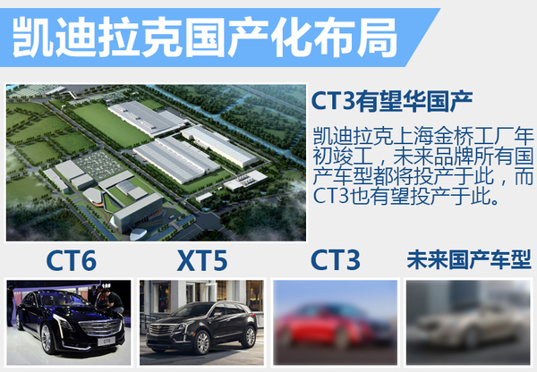 作为通用旗下唯一豪华品牌,凯迪拉克逐步加速国产化进程,到2018年旗下产品95%以上会实现本地化生产。今年1月27日,位于上海金桥的凯迪拉克专属工厂已建设完成,包括已经上市的CT6和XT5以及未来凯迪拉克所有国产车型都在此投产。CT3引入国内后也有望采用国产方式在华销售。(网通社2016年5月4日北京报道)
