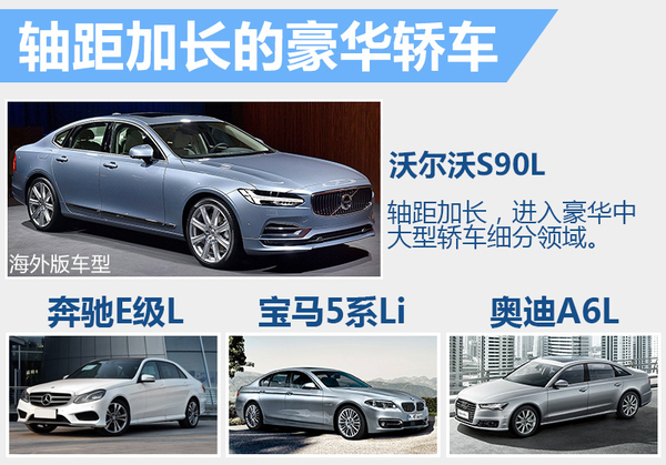 在国内的豪华中大型轿车市场中,来自德国的奔驰E级、宝马5系和奥迪A6,在华本土化生产后都对轴距进行了加长。沃尔沃汽车集团研发业务高级副总裁Peter Mertens曾在S90全球“首秀”时向网通社表示:“全新S90和之前的S80一样,都属于同一级别区间,它的直接竞品是奥迪A6和宝马5系这个级别。”沃尔沃S90L推出后,将与“德系三强”的中大型系列轿车进入同一细分领域。(网通社2016年5月4日北京报道)