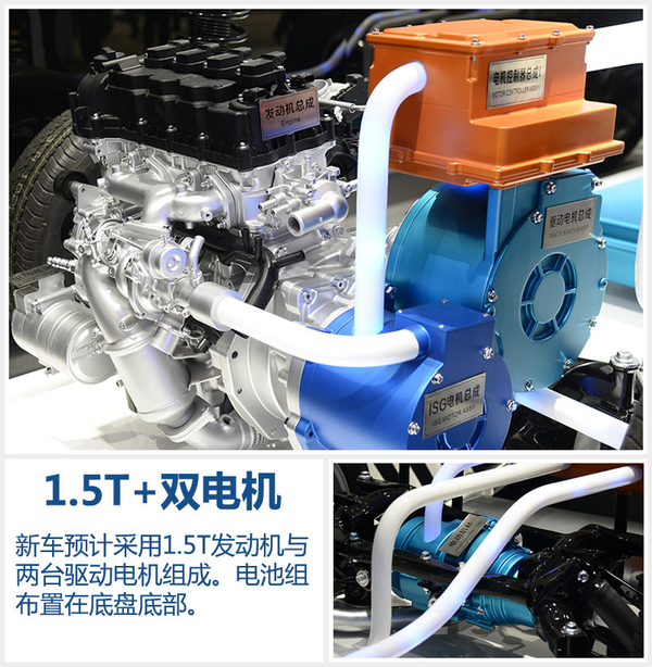 本次北京车展上,长安汽车展出了CS75 PHEV四驱系统。这一动力系统由一台发动机与两台电动机组成。发动机预计采用CS35车型1.5T的动力引擎。与传统前置前驱相比,在前端增加了一台驱动电机和ISG电机,配合电机控制总成,达到动力输出、回收电能与启停等功能,在后轴端由一个驱动电机和一个电机控制总成构成,底盘布局电池组。