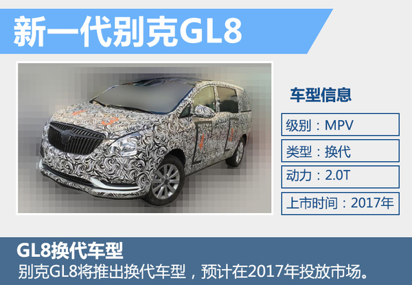 根据通用“新五年”战略,2016至2020年将在中国市场推出20多款全新及改款SUV与MPV车型。作为通用三大品牌中的销售主力,别克将强化MPV市场的布局。目前,别克在华仅有GL8一款MPV车型,上汽通用别克市场营销事业部部长包晔表示:“别克会不断在SUV、MPV上推出新产品,不久的将来会有全新的MPV的产品推出。”网通社梳理别克新车规划,除一款全新MPV之外,GL8也将迎来换代车型。