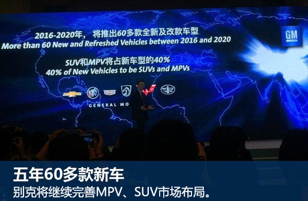 根据规划未来五年,通用汽车及合资企业将在中国推出60多款全新及改款车型。这些即将推出的新车型中,SUV与MPV将占40%左右,包括多款7座车型。在换代GL8和全新GL6两款MPV以外,别克未来还会有更多的MPV车型推出,除MPV市场之外别克还将继续完善SUV市场布局。