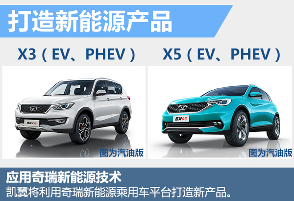 据介绍,除年内将推出的C3电动车外,包括凯翼X3以及未来将推出的X5在内,均将推出纯电动(EV)和插电混动(PHEV)产品。值得一提的是,凯翼将推出的新能源产品,将利用奇瑞已形成的新能源乘用车研发体系和集成平台打造,这一策略无疑将大幅缩减研发成本并缩短产品投放周期。