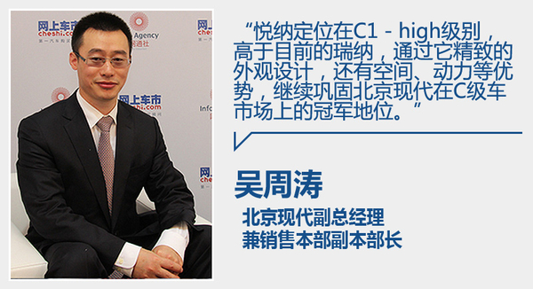 北京现代全新小型车-悦纳概念车在北京车展正式发布,新车将于今年第四季度正式上市,这也是沧州工厂首款量产车型。对于新车的车型定位,北京现代副总经理兼销售本部副本部长吴周涛在与网通社沟通时表示:“悦纳主要是面向22-30岁的年轻消费者,定位在C1-high级别,高于我们目前销售的瑞纳车型,主要通过它精致的外观设计,还有空间、动力等优势,继续巩固北京现代在C级车市场上的冠军地位。”可以说,悦纳的发布以及领动的上市将只是拉开今年112万辆的序幕,随后北京现代将采取“三步走”战略,继续强化产品竞争力,为完成目标打下基础。