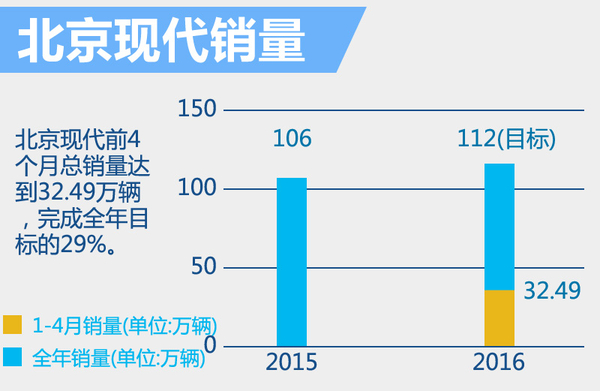 除领动市场表现突出之外,北京现代其余主力车型市场表现也同样强劲,其中名图4月份销量达到11000辆;第九代索纳塔销量较3月有较大增幅,至4500辆;SUV车型-全新途胜自上市以来,每月销量保持万辆以上,4月份达到11500辆、ix25销量为9000辆,表现十分稳定;ix35销量则达到6500辆。综合前4个月销量来看,北京现代从3月份销量回升,到4月份保持增长,2016年累计销量已达到32.49万辆,完成全年目标的29%。