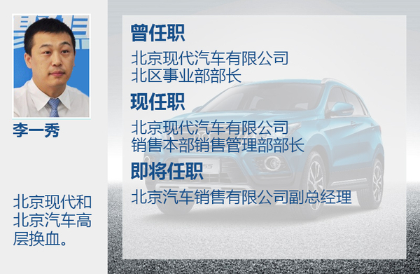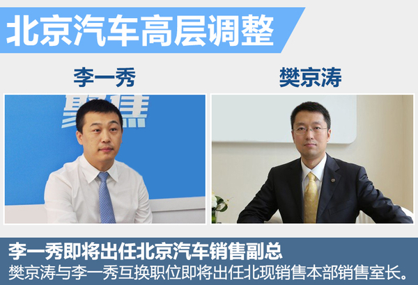 目前北京汽车市场发展已经逐渐步入正轨,旗下北京品牌近期推出了越野车BJ40、BJ40L及BJ80,三款车的加入标志着北京汽车向产品高端化进行发展。拥有更高层次的产品后,下一步就是对品牌市场的宣传、销售策略进行重新调整,伴随着北京汽车的高层架构进行人事调整。网通社从北京汽车内部人士获悉,现任北京现代汽车有限公司销售本部销售管理部部长李一秀即将出任北京汽车销售有限公司副总经理一职,全面负责北京汽车的销售和渠道建设工作,而现任北京汽车销售有限公司副总经理樊京涛将与李一秀职位互换。