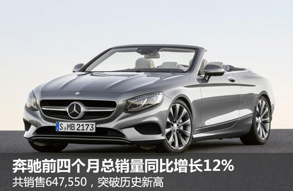 随着梅赛德斯-奔驰E级产品线增加了全新车型,同时推出了一系列敞篷版车型,包括SL级、SLC级、和S级敞篷车,均为销量的攀升做出了巨大贡献。就2016年而言,梅赛德斯-奔驰品牌在前四个月的总销量同比增长了12%,共销售647,550台,创造了新的销售记录。