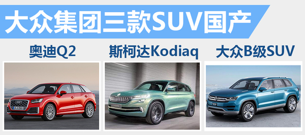 大众此前公布将在2020年前再推出10款中国本土生产的SUV车型,可以看出在未来投产的车型规划中,SUV将成为大众在中国市场的重点。网通社对大众近期将推出的全新车型梳理后发现,在明年大众集团旗下大众品牌、斯柯达品牌和奥迪品牌将分别实现B级SUV、A+级SUV以及A0级SUV三款新产品的国产。