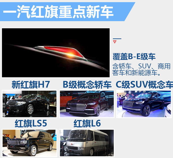 按计划,红旗H7新产品(包括红旗H7挚途2.0版本以及新红旗H7四驱车型、蓝途车型、PHEV车型)将于今年年底及明年年初上市。豪华B级轿车概念车和豪华C级SUV概念车目前已进入试生产阶段,将在未来两到三年内向市场投放,并会在最大程度上保留概念车所采用的年轻化设计风格。此外,L平台下属的豪华全尺寸SUV“LS5”和豪华商用客车L6也将在后续问世。