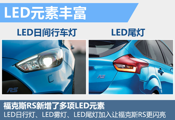 外观配置:福克斯RS多LED日间行车灯、LED后雾灯、LED尾灯等五项配置