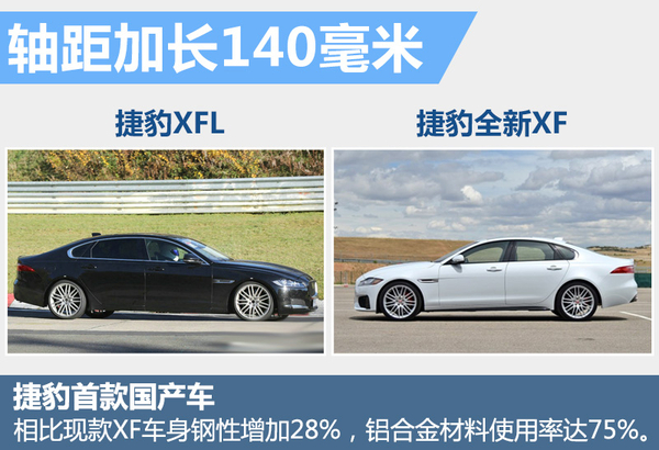 继捷豹全新一代XF正式在华上市,随后在年底还将投产长轴版车型。在此次北京车展上,捷豹正式在华发布首款国产车,计划投产XF长轴距版。根据捷豹汽车内部人士透露,XFL轴距加长140毫米至3,100毫米,相比现款XF车型在车身钢性上增加28%,车体铝合金材料使用率高达75%。