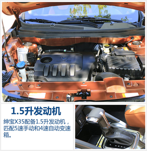 绅宝X35配备1.5升自然吸气发动机,最大功率85千瓦,峰值扭矩可达到148牛米,传动系统与之匹配的是5速手动和4速自动变速箱。发动机符合国V排放标准,并配备怠速启停功能,手动和自动版车型的百公里油耗分别为6.4升和6.6升,体现出不错的用车性价比。