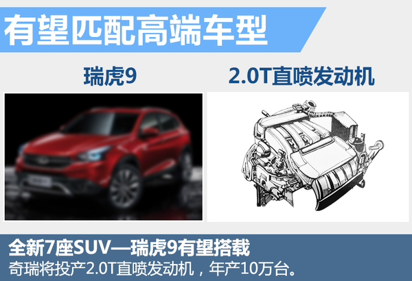 根据奇瑞汽车的“十三五”战略规划,期间针对平台、新车以及核心技术等方面进行部署,其中发动机是奇瑞汽车未来发展的重要一环。近日,网通社通过芜湖市环保局了解到,奇瑞汽车2.0T直喷发动机生产线已通过芜湖市环保局竣工环保验收,即将投入生产,年产能10万台,未来有望搭载到首款中大型7座SUV瑞虎9之上。