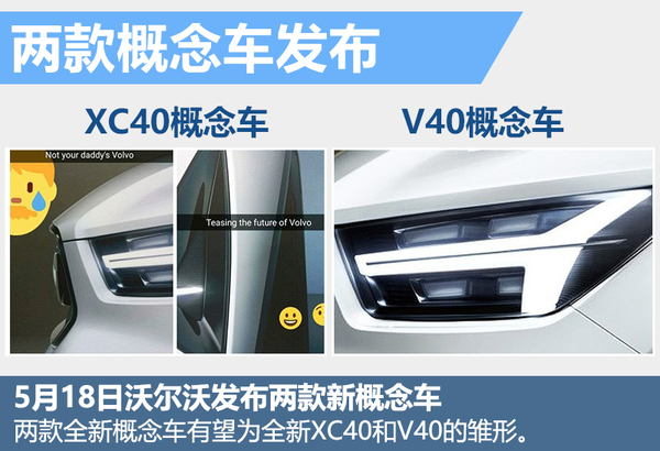 在当地时间5月18日15点(即:北京时间5月18日21点),沃尔沃将举行继SPA平台之后,第二大模块化平台技术CMA的全球首发仪式。新平台主要针对未来该品牌旗下“60系列”以下产品所使用,可以看作是沃尔沃旗下的小型车平台。另外,网通社从沃尔沃官方了解到,除全新CMA平台的发布外,在此次活动中,还将推出两款基于新技术所打造的概念车型,未来有望是全新V40和XC40的雏形。